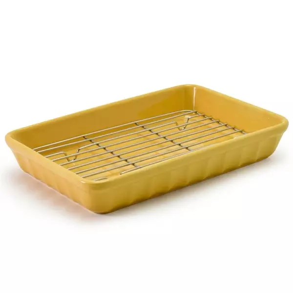 商品名稱:日本製美濃燒烘焙長方盤+濾網組(Brownie棕、Ivory象牙白)